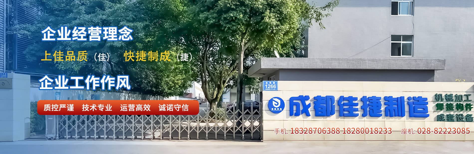成都佳捷制造(包括成都佳捷精密機械制造有限公司和成都佳捷機械制造有限公司)是一家專業(yè)從事機械加工及焊接結構件加工、成套設備產(chǎn)和銷售的綜合性配套企業(yè)。是中國中鐵鐵科院、世界******企業(yè)梅特勒—托利多、中建環(huán)能德美、四川嘉拓智能設備制造有限公司等的認證供應商。公司以“上佳品質,快捷制成”為企業(yè)經(jīng)營理念,建立了高效、立體的技術、質保、生產(chǎn)、服務四位一體的運營體系。